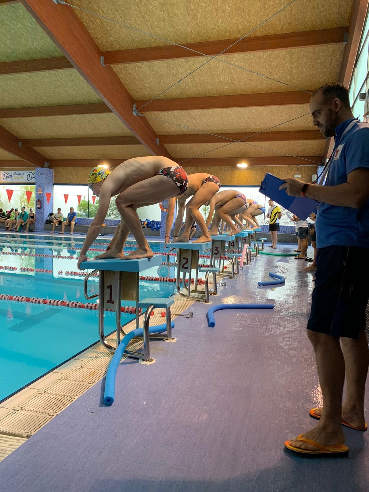 A las 10:00 de la mañana daba comienzo la reunión inicial donde se explicó todo el desarrollo de la jornada, junto con el reparto de dorsales necesarios para la carrera a pie. A continuación comenzó la jornada de natación, donde los triatletas en categoría junior y cadete realizaron las distancias de 100 y 400m.